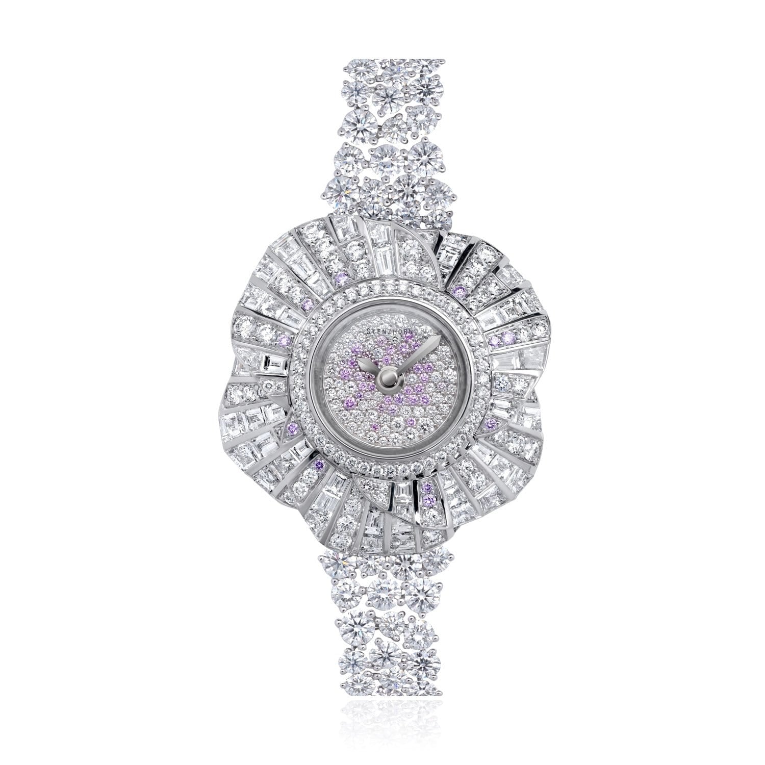 18K Gold, weiße und rosa Diamanten, Schweizer Quarzwerk