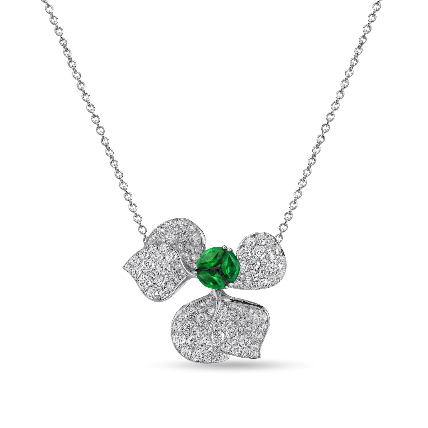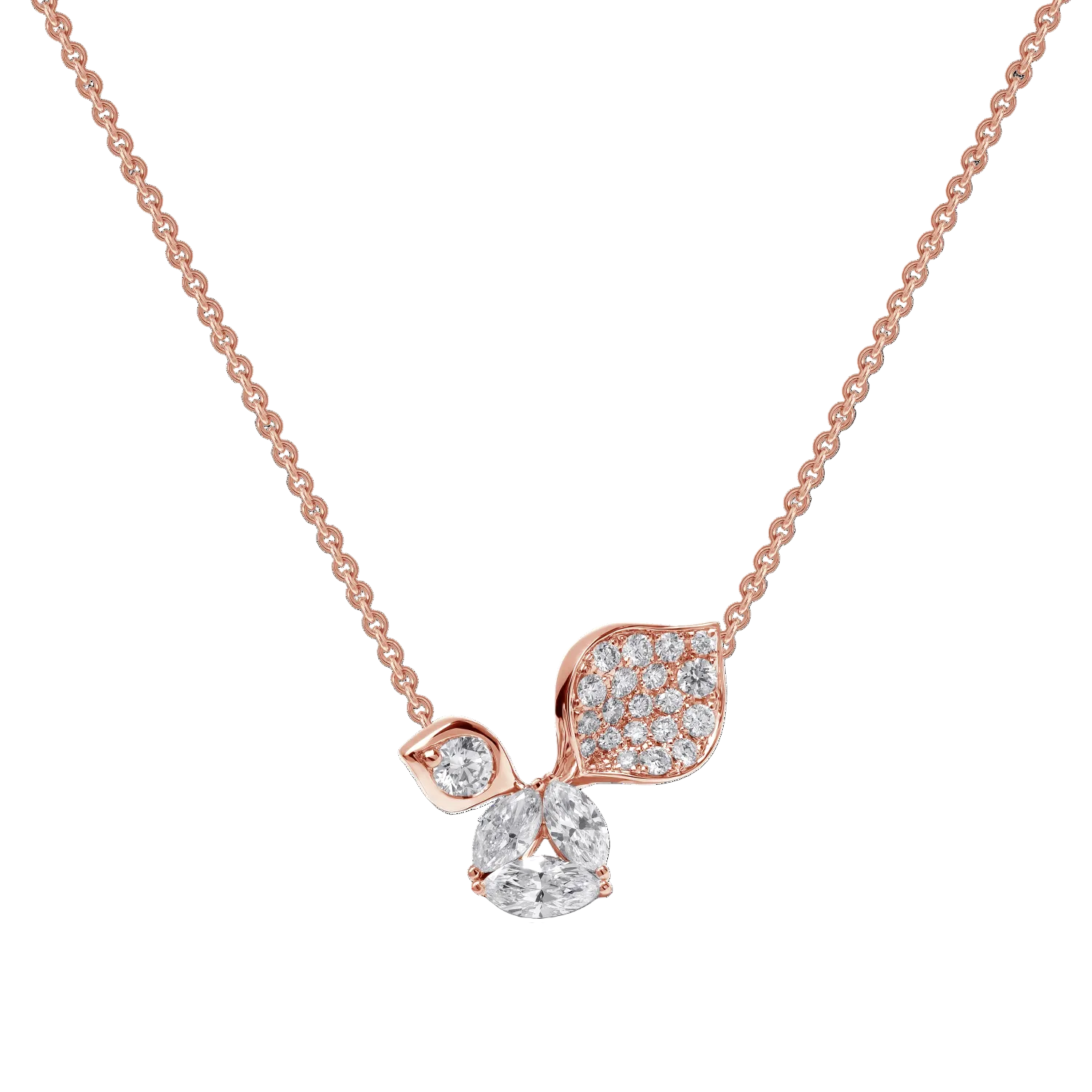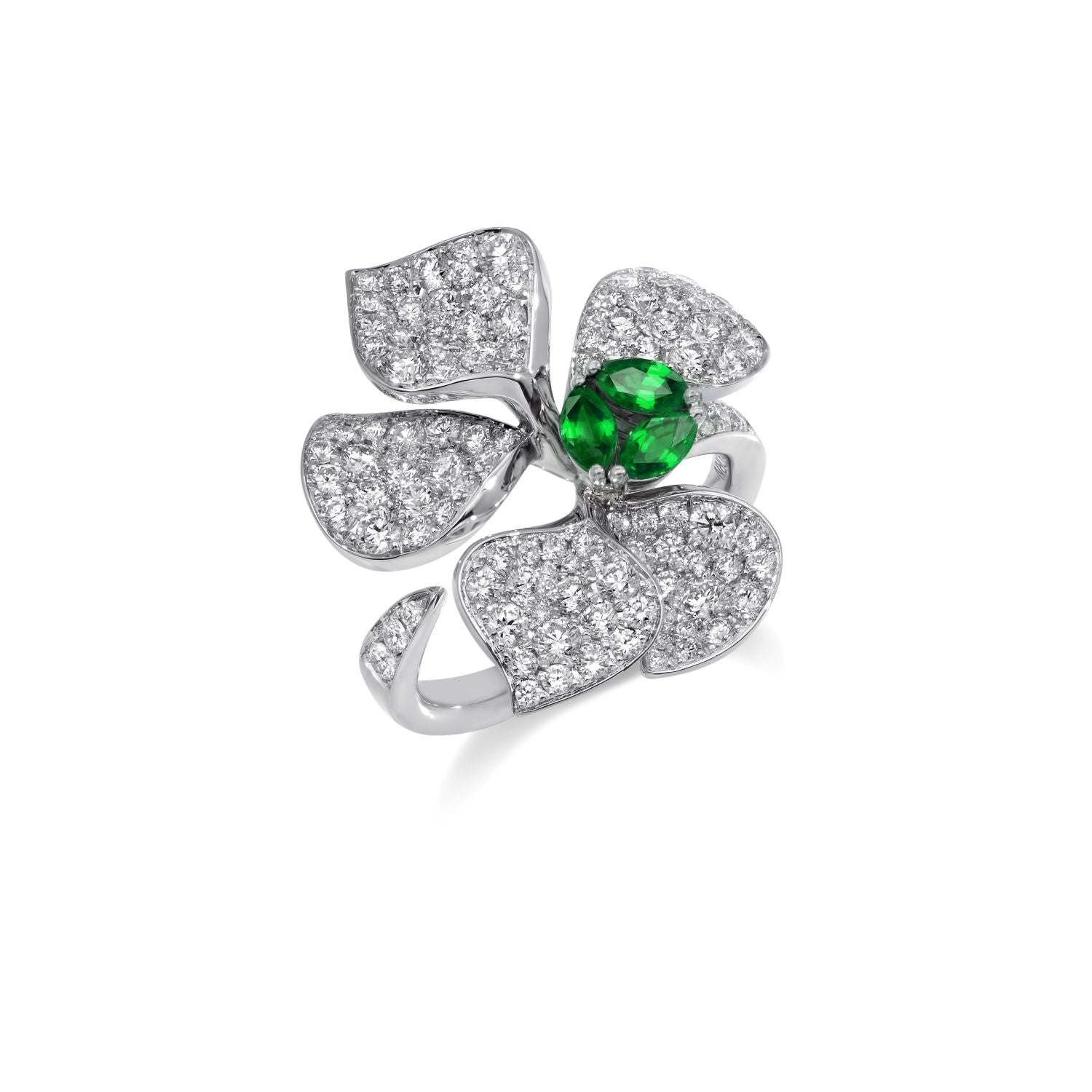 Imagine walking through a serene garden in Paris, where the air is filled with the sweet scent of blossoming flowers which gracefully sway in a warm breeze. Each piece in this enchanting daily line tells a story of delicate blossom buds unfurling into full bloom while maintaining exquisite grace and ethereal lightness. The collection reflects this poetic image with intricate designs adorned with dazzling diamonds shimmering like dewdrops on delicate petals.