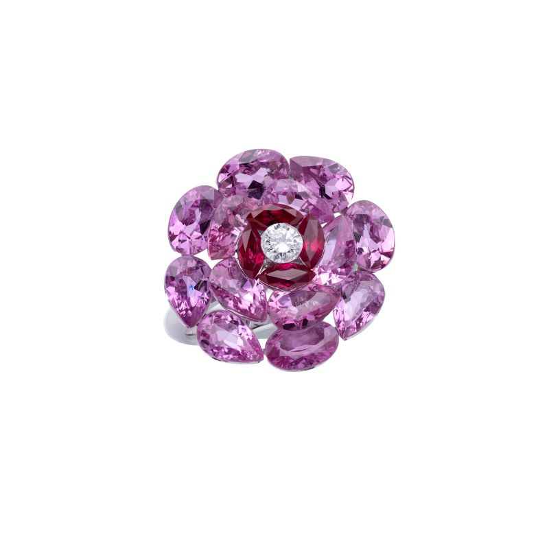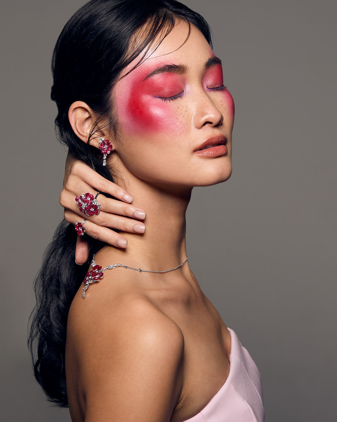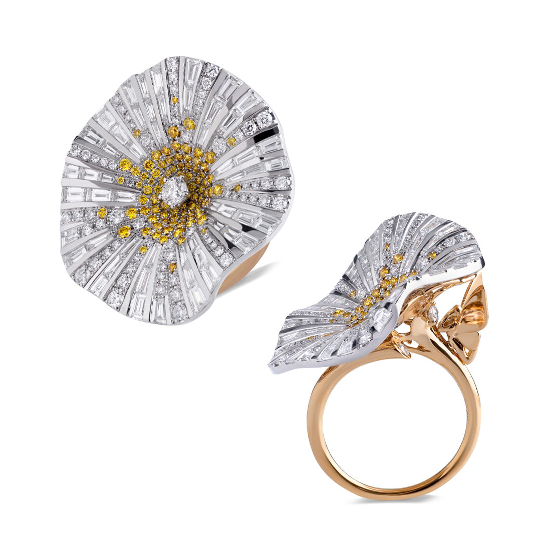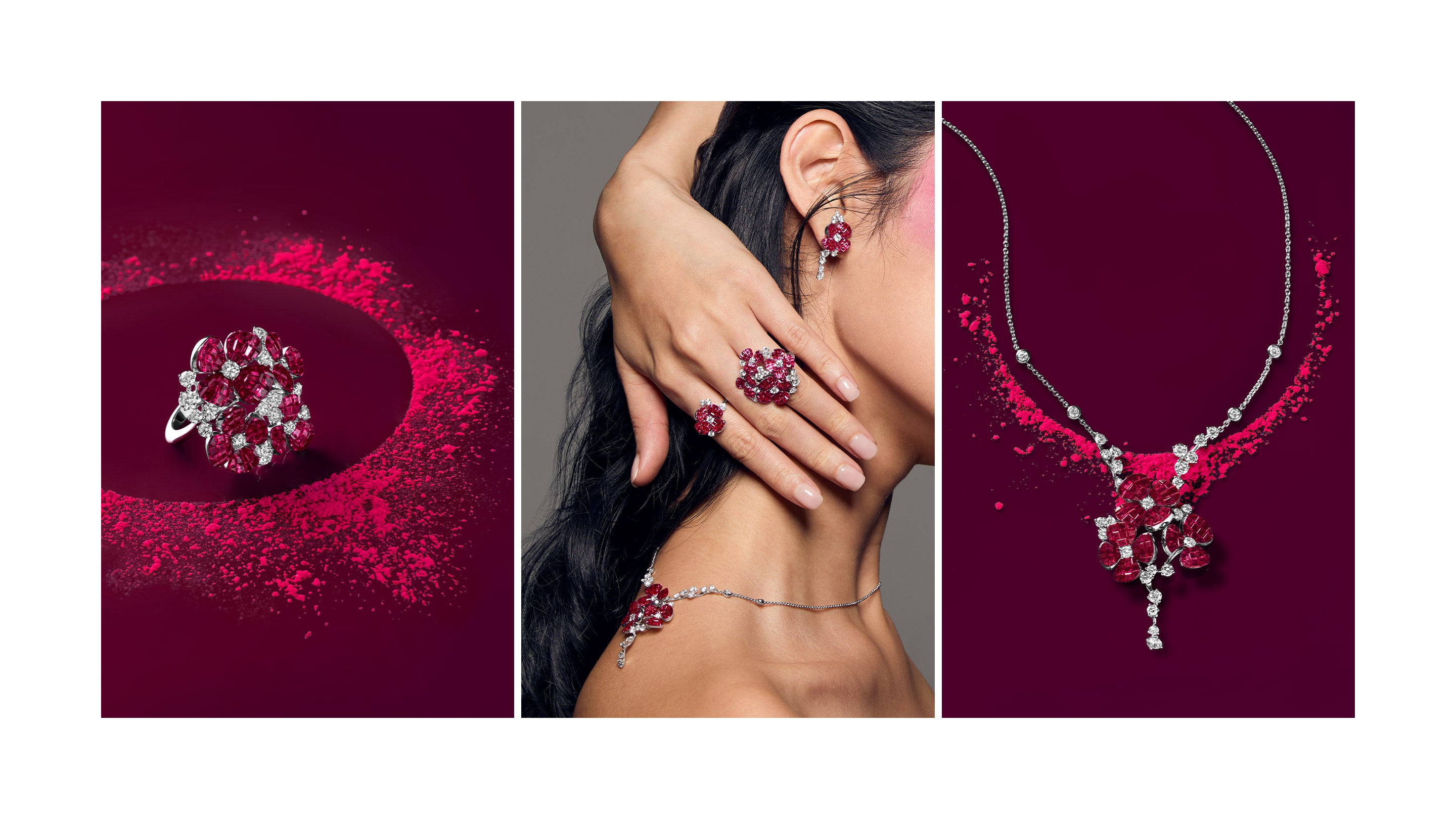 تتجاوز إبداعات "أ فيور دي روزا" معيار الصناعة الحالي المتمثل في الترصيع "الخفي"، فتبدو وكأنها تطفو على بشرتك بسحرٍ لا يدعّمها شيءٌ مرئي. وتتحقق هذه النتيجة الاستثنائية بفضل تقنية ترصيع الأحجار الكريمة "العائمة" الفريدة، والتي تتيح ترصيع الأحجار بشكل غير مرئي على مستويات وزوايا مختلفة.