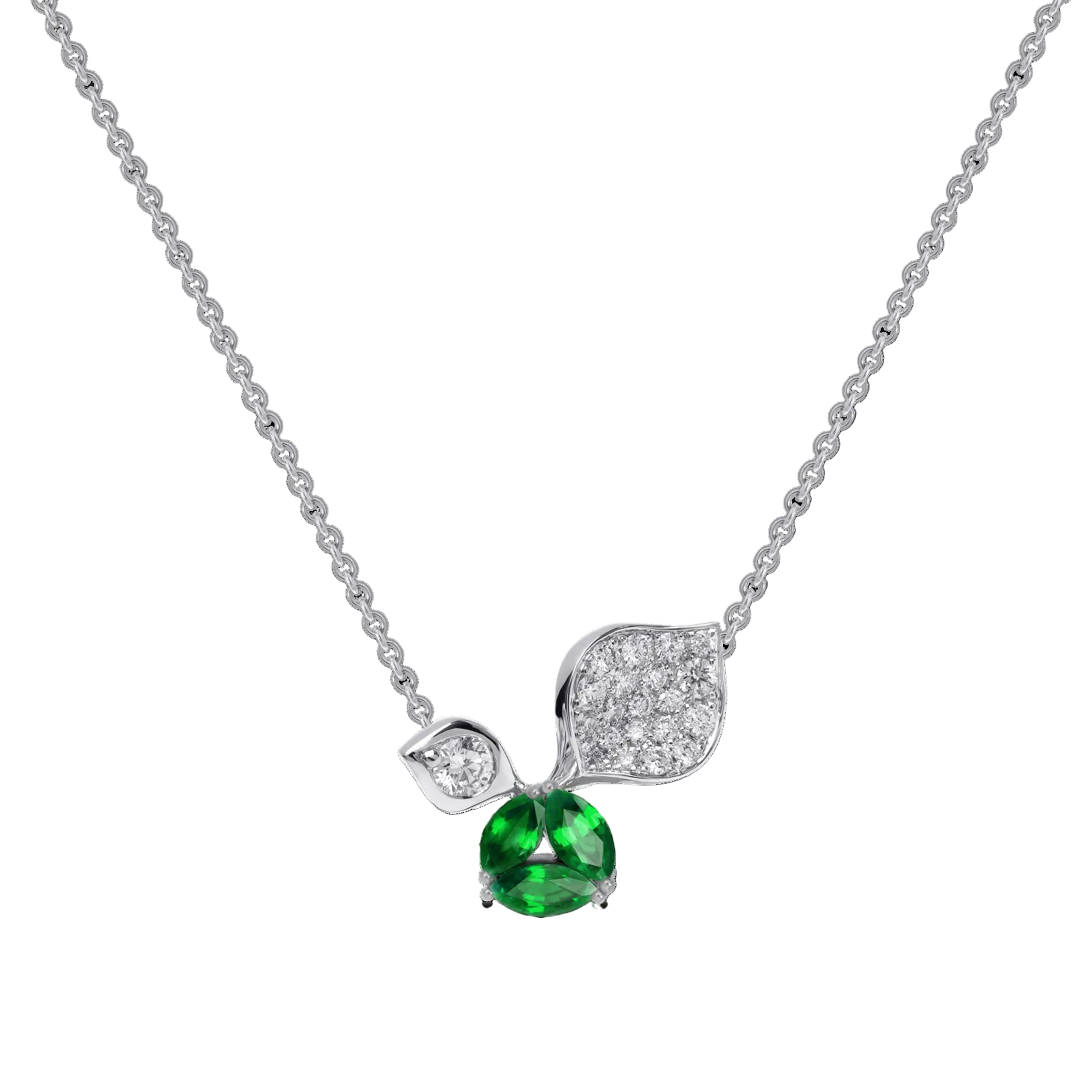 تُضفي قلادة À Fleur de Paris Tsavorite لمسة راقية على جمال الربيع بتصميمها الرقيق والبسيط. صُنعت هذه القلادة من الذهب عيار 18 قيراطاً وتتميز بزخرفة واحدة على شكل بتلة مرصعة بالألماس ويكملها حجر تسافوريت بقطع ماركيز نابض بالحياة. تُعد هذه القلادة مثالية للأناقة اليومية أو للإطلالات ذات الطبقات، فهي تضفي سحراً باريسياً على أي إطلالة.