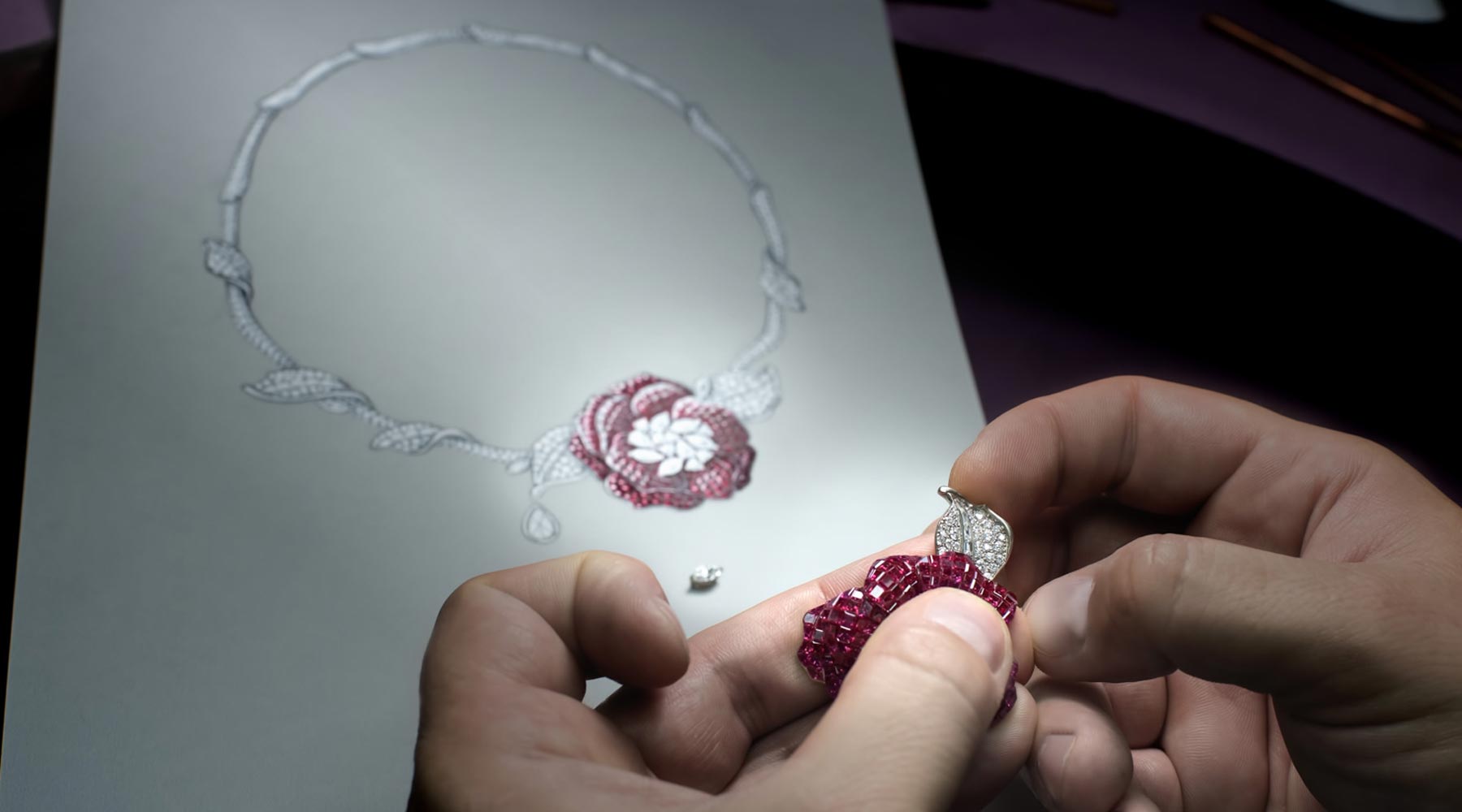 该品牌聘用了高技能的工匠,他们与宝石和钻石切割师、金匠和宝石镶嵌师携手合作。这样,公司就能完全掌控从产品设计、开发到制造的价值链。